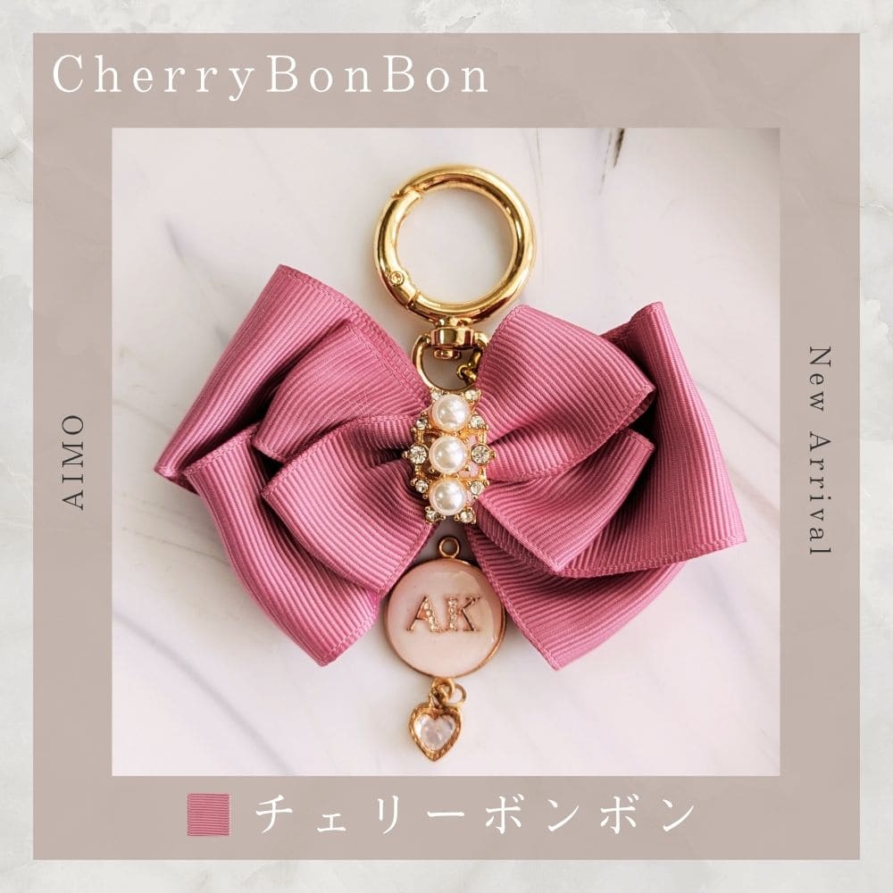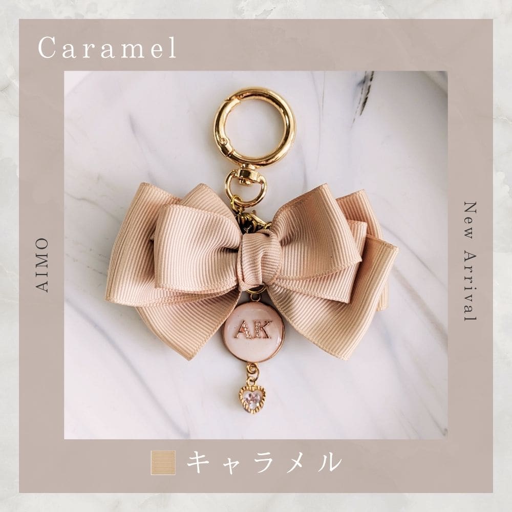 AIMOの人気アイテム・リボンチャームのイニシャルは高級感のあるゴールドに数粒のラインストーンをあしらっています。