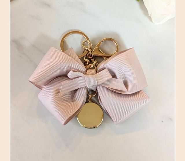 リボンチャームのリボン生地は、韓国産のグログラン生地を使用しています。細やかな織り目と滑らかな質感が特徴で、上品さと高級感を演出します。