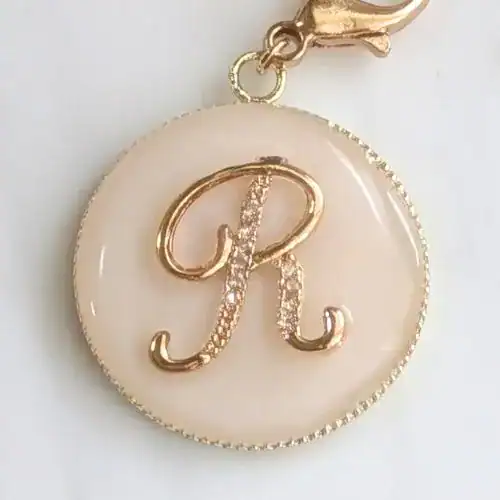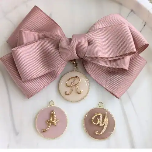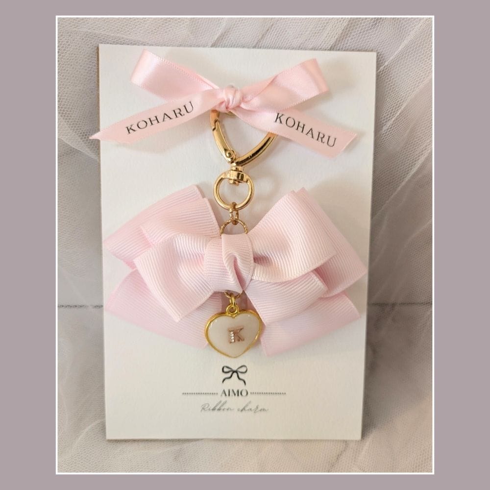 AIMOの人気アイテム・リボンチャームのイニシャルは高級感のあるゴールドに数粒のラインストーンをあしらっています。